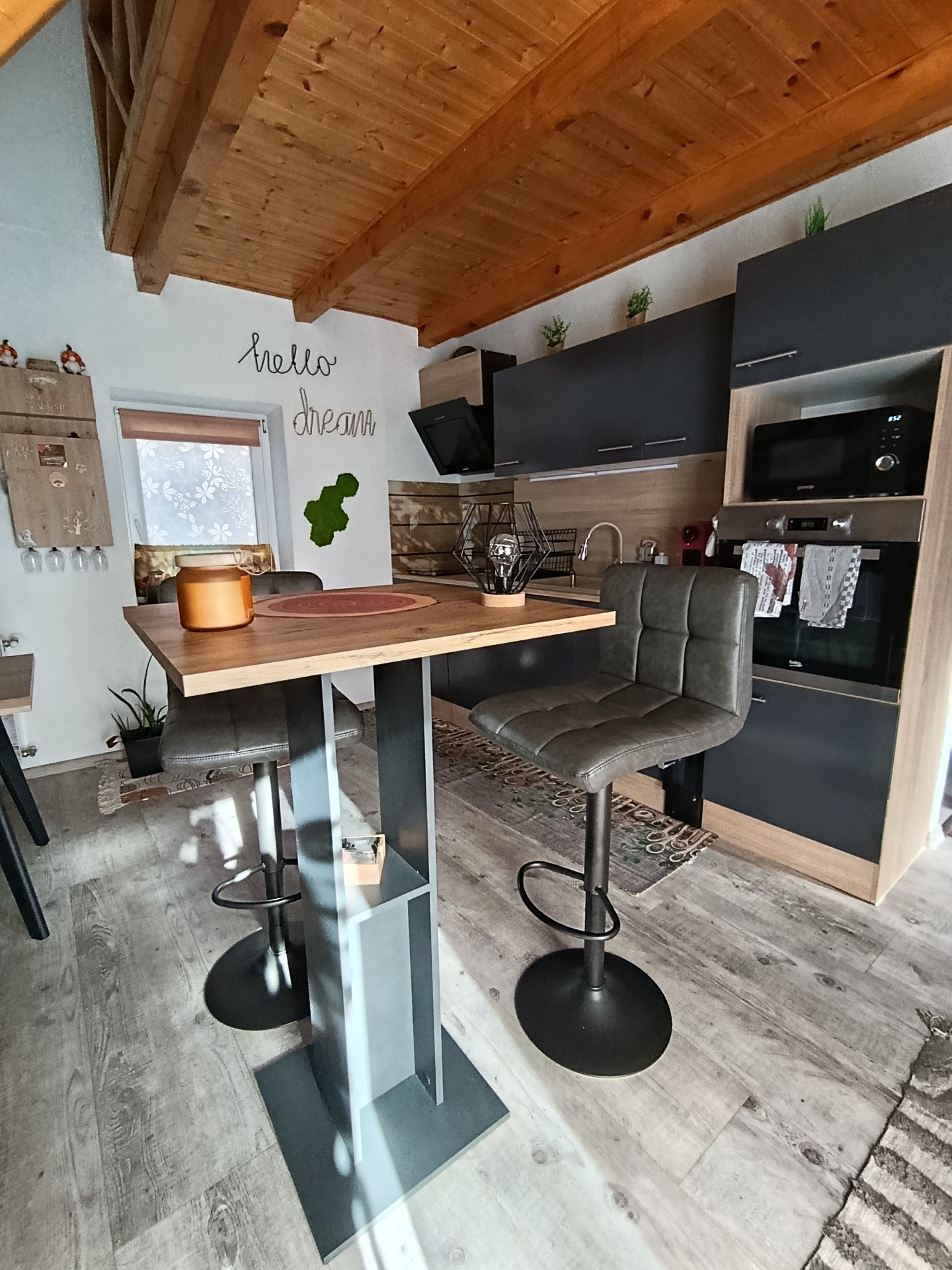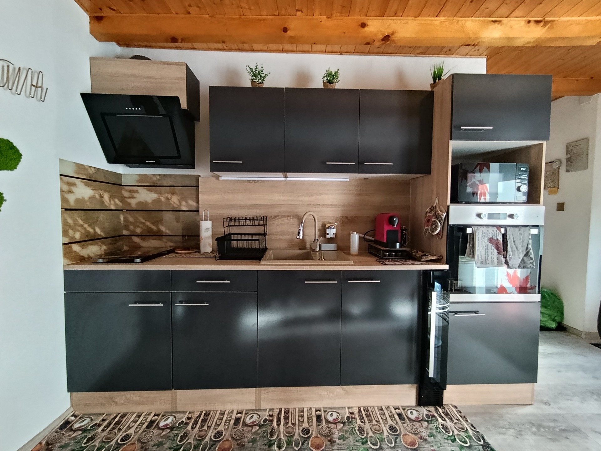 A konyhában mindent megtalál ami a reggeli-ebéd-vacsora készítéshez szükséges. Vízforraló, kapszulás kávéfőző, indukciós főzőlap, elektromos sütő, mikrohullámú sütő, kenyérpirító, edények stb... állnak rendelkezésükre.
